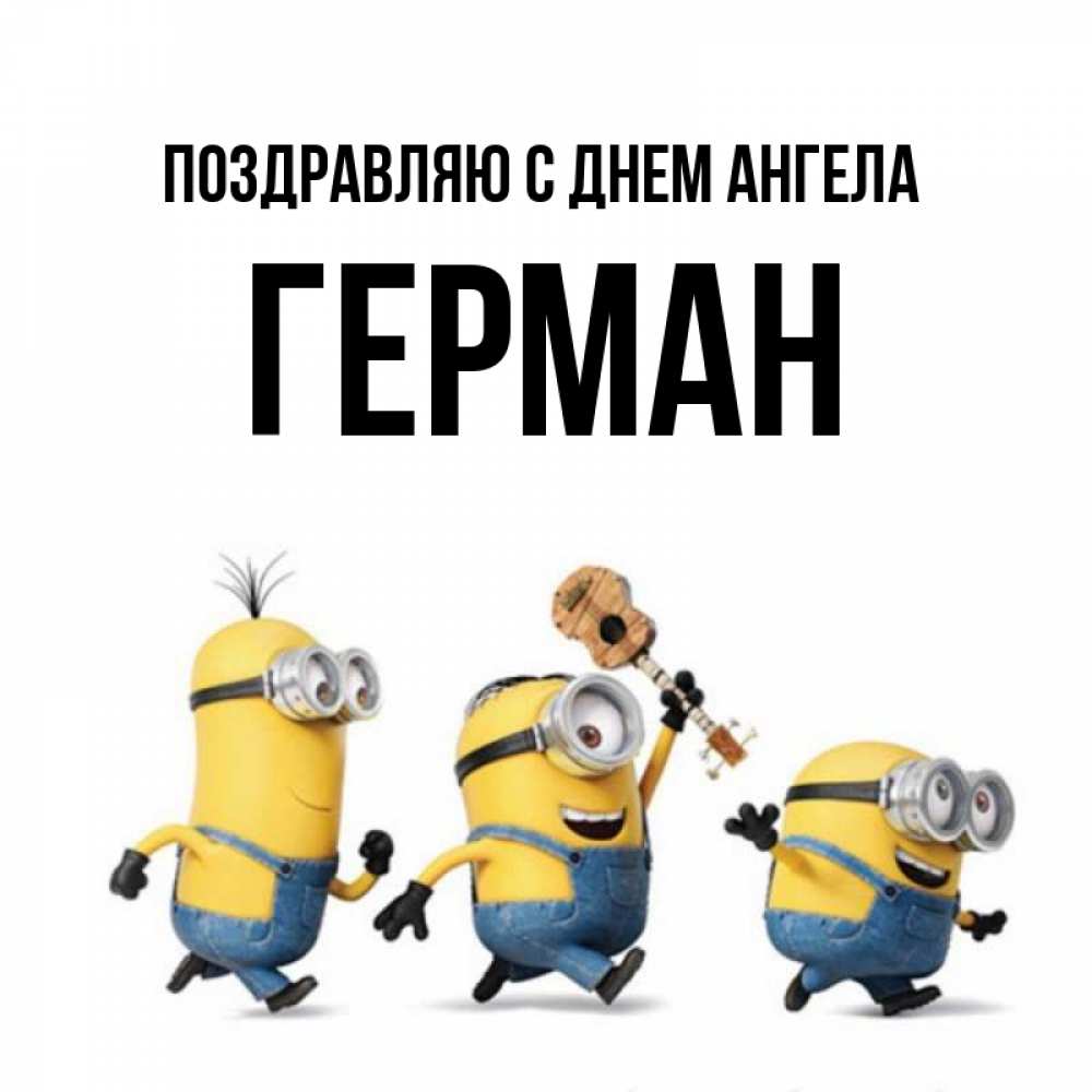 Открытка Поздравляю с днем Ангела Герман. позитив от миньонов. миньоны и прекрасное утро