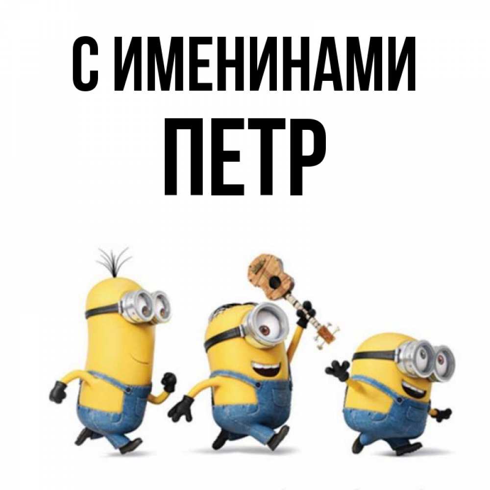 Открытка С именинами Петр. позитив от миньонов. миньоны и прекрасное утро