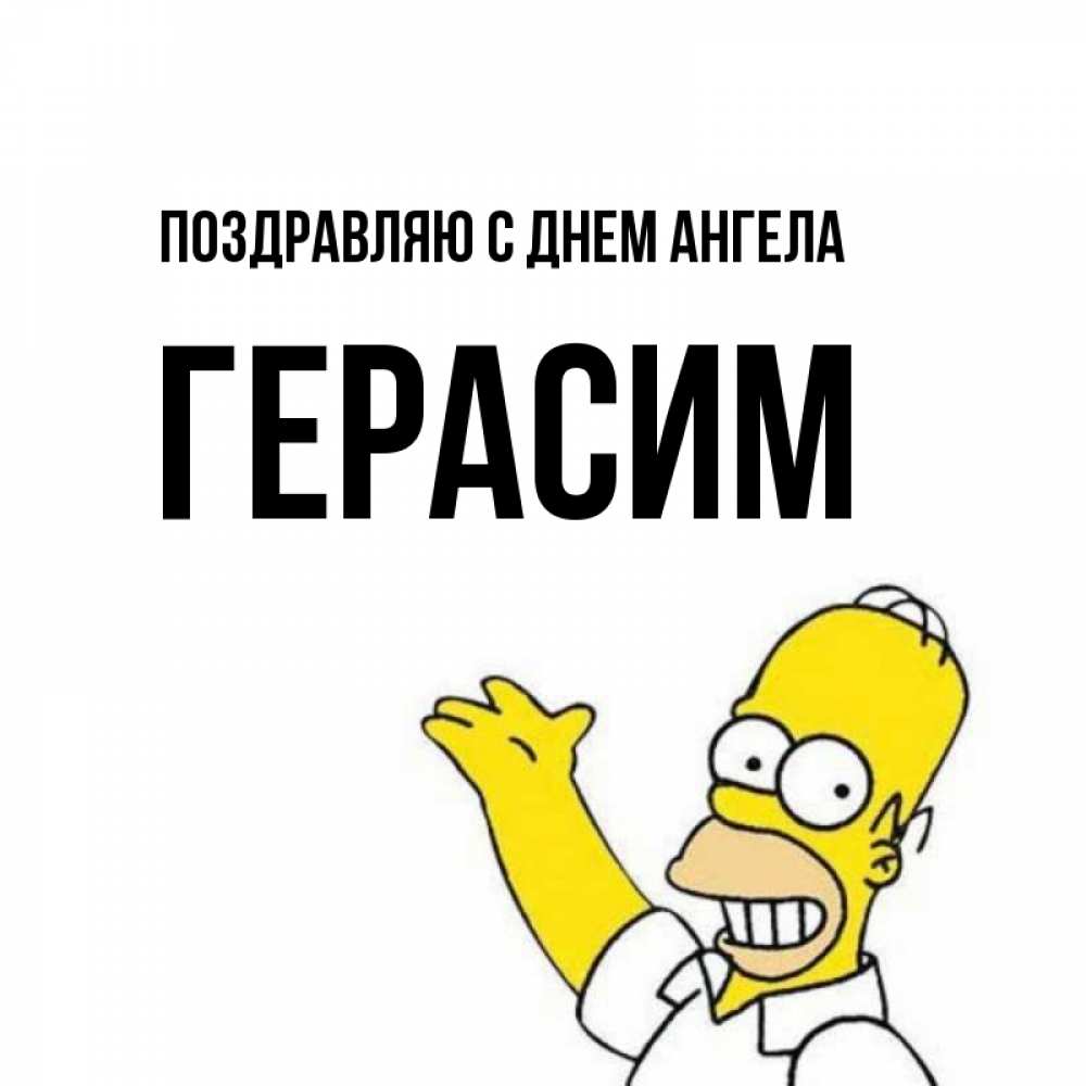 Открытка Поздравляю с днем Ангела Герасим. Гомер Симпсон с пожеланием. открытки с пожеланиями