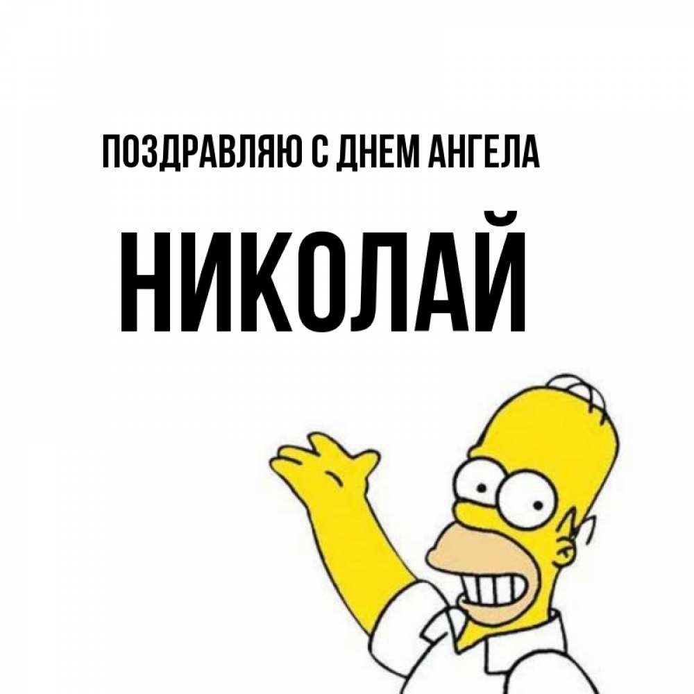 Открытка Поздравляю с днем Ангела Николай. Гомер Симпсон с пожеланием. открытки с пожеланиями