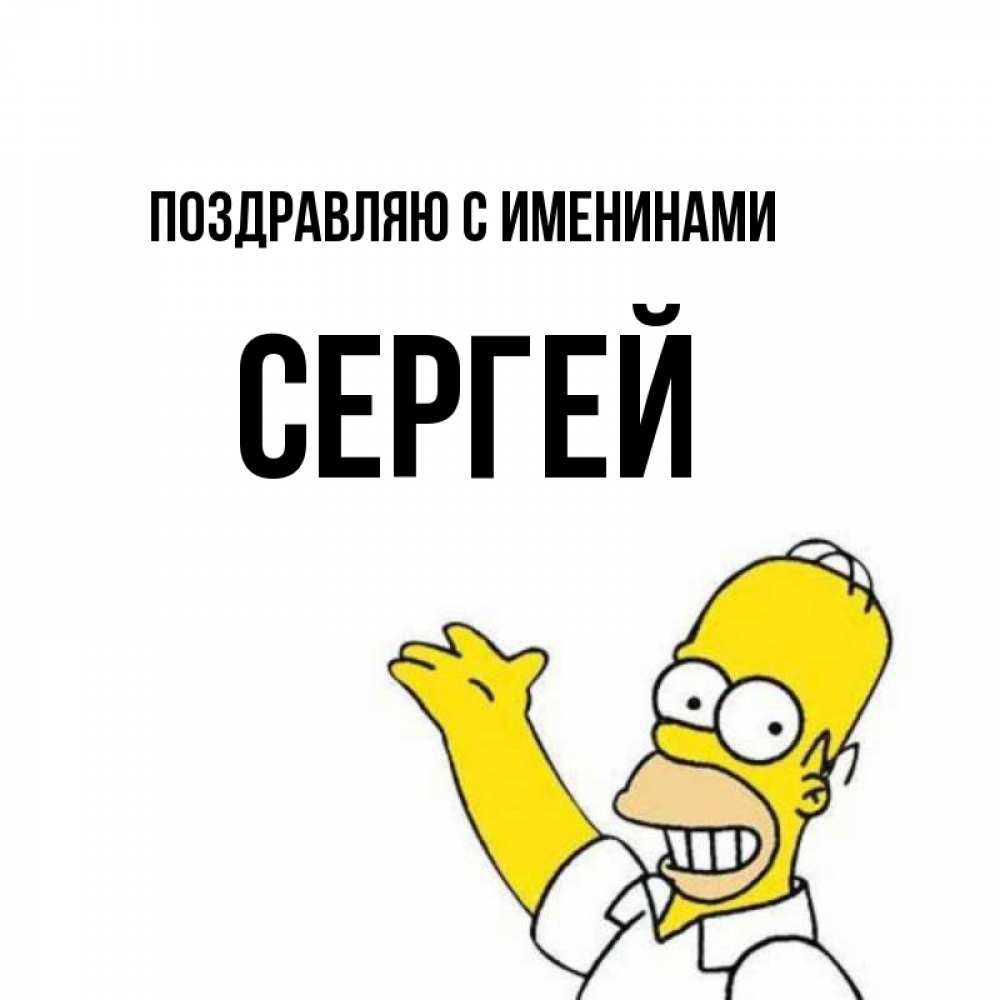 Открытка Поздравляю с именинами Сергей. Гомер Симпсон с пожеланием. открытки с пожеланиями