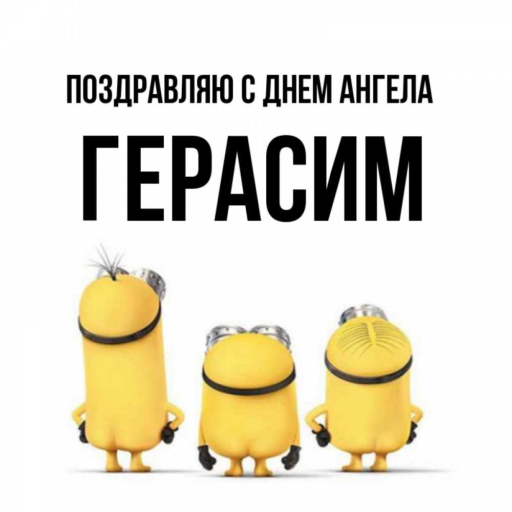 Открытка Поздравляю с днем Ангела Герасим. миньоны и надпись. подписать открытку онлайн бесплатно