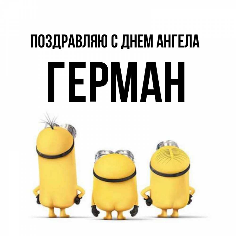 Открытка Поздравляю с днем Ангела Герман. миньоны и надпись. подписать открытку онлайн бесплатно