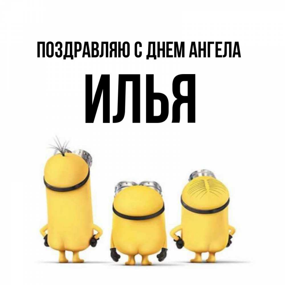 Открытка Поздравляю с днем Ангела Илья. миньоны и надпись. подписать открытку онлайн бесплатно