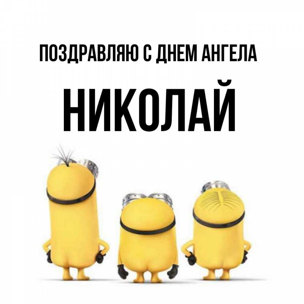 Открытка Поздравляю с днем Ангела Николай. миньоны и надпись. подписать открытку онлайн бесплатно