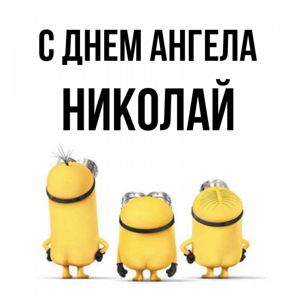 Открытка С днем Ангела Николай. миньоны и надпись. подписать открытку онлайн бесплатно