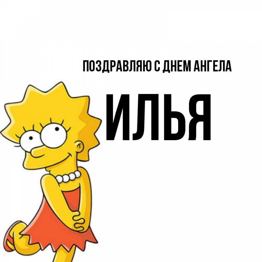 Открытка Поздравляю с днем Ангела Илья. девочка симпсон. в платье и ожерелье