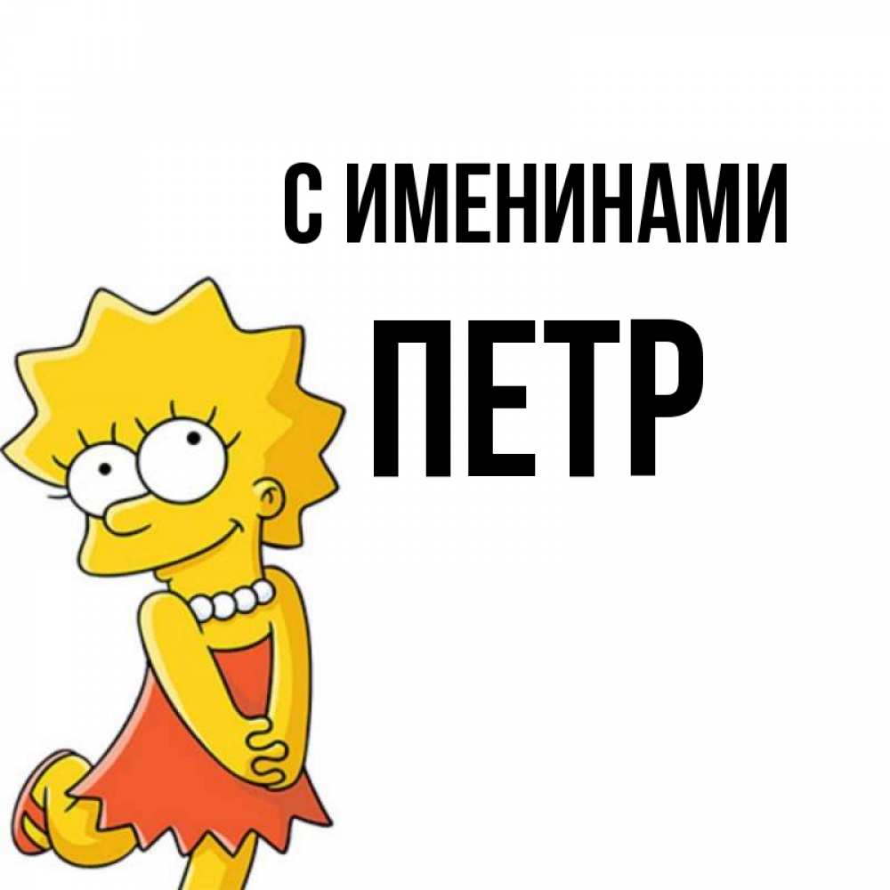 Открытка С именинами Петр. девочка симпсон. в платье и ожерелье