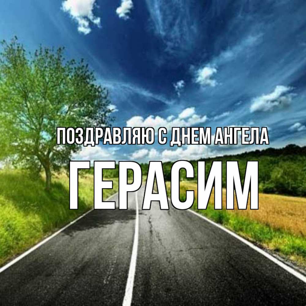 Открытка Поздравляю с днем Ангела Герасим. солнечная погода. дорога и небо
