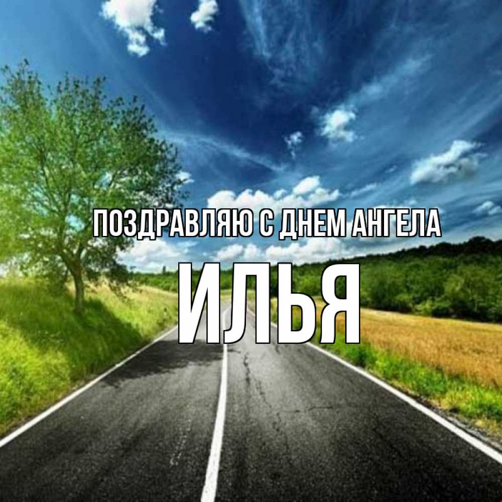 Открытка Поздравляю с днем Ангела Илья. солнечная погода. дорога и небо