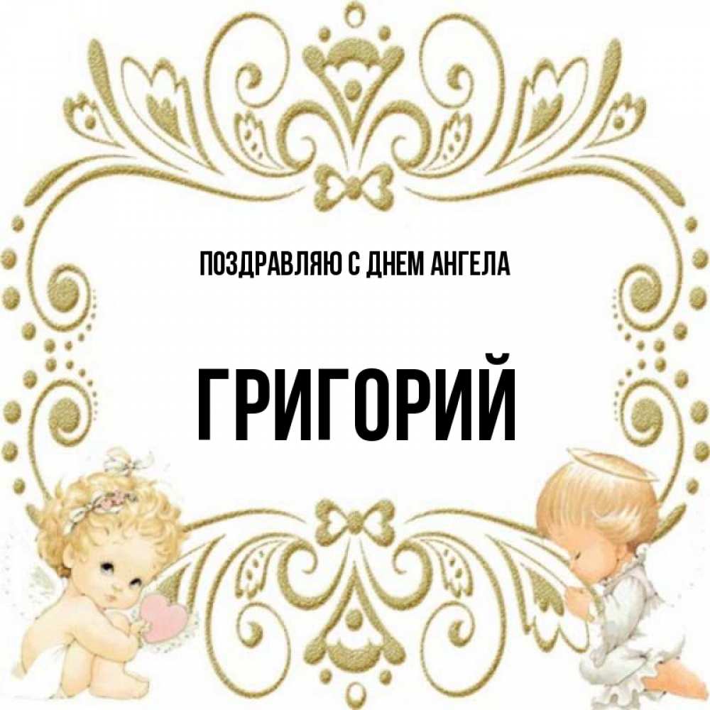 Открытка Поздравляю с днем Ангела Григорий. Ангелы и красивая рамочка. с именинами поздравляют два красивых ангела. Один с сердечком другой молится