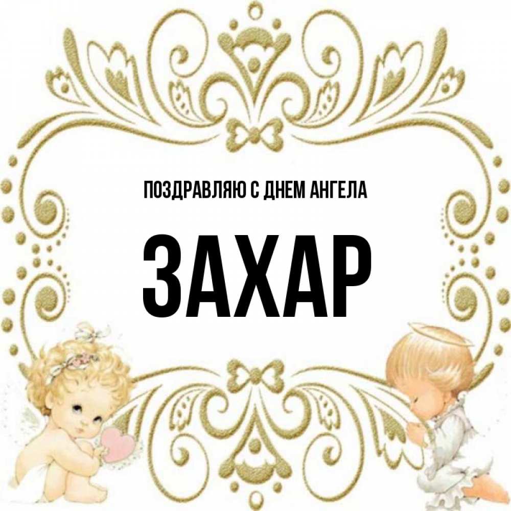 Открытка Поздравляю с днем Ангела Захар. Ангелы и красивая рамочка. с именинами поздравляют два красивых ангела. Один с сердечком другой молится