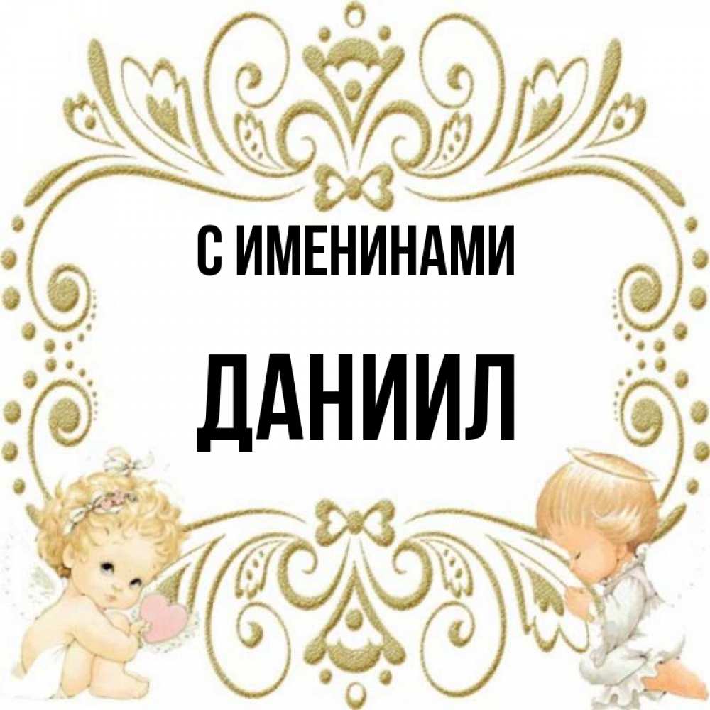 Открытка С именинами Даниил. Ангелы и красивая рамочка. с именинами поздравляют два красивых ангела. Один с сердечком другой молится