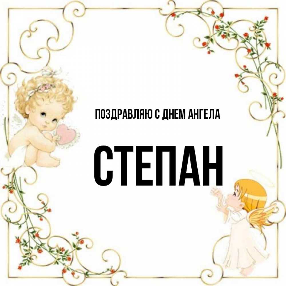 Открытка Поздравляю с днем Ангела Степан. Ангелы в рамочке с цветами. ангелы желают прекрасных именин