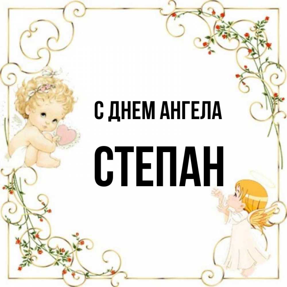 Открытка С днем Ангела Степан. Ангелы в рамочке с цветами. ангелы желают прекрасных именин