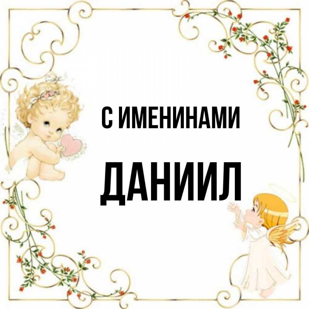 Открытка С именинами Даниил. Ангелы в рамочке с цветами. ангелы желают прекрасных именин