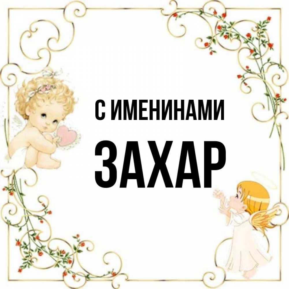 Открытка С именинами Захар. Ангелы в рамочке с цветами. ангелы желают прекрасных именин