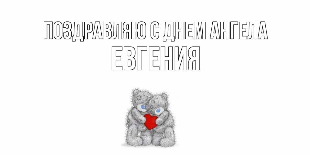 Открытка Поздравляю с днем Ангела Евгения. Мишки обнимаются с сердечко. мишки, сердце