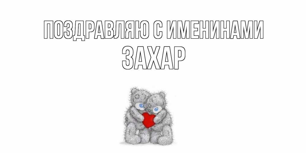 Открытка Поздравляю с именинами Захар. Мишки обнимаются с сердечко. мишки, сердце