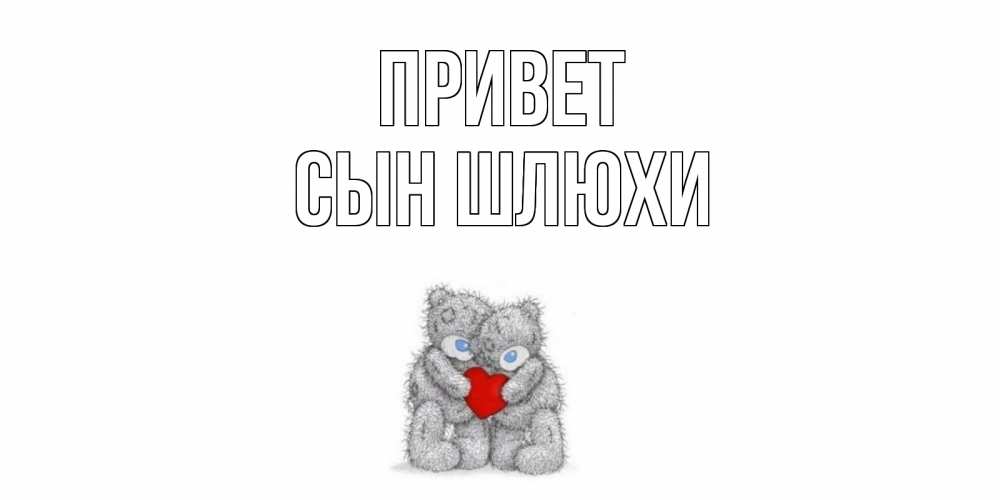 Открытка Привет Сын шлюхи. Мишки обнимаются с сердечко. мишки, сердце