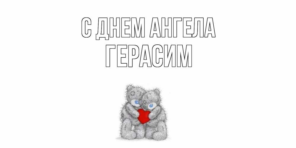 Открытка С днем Ангела Герасим. Мишки обнимаются с сердечко. мишки, сердце