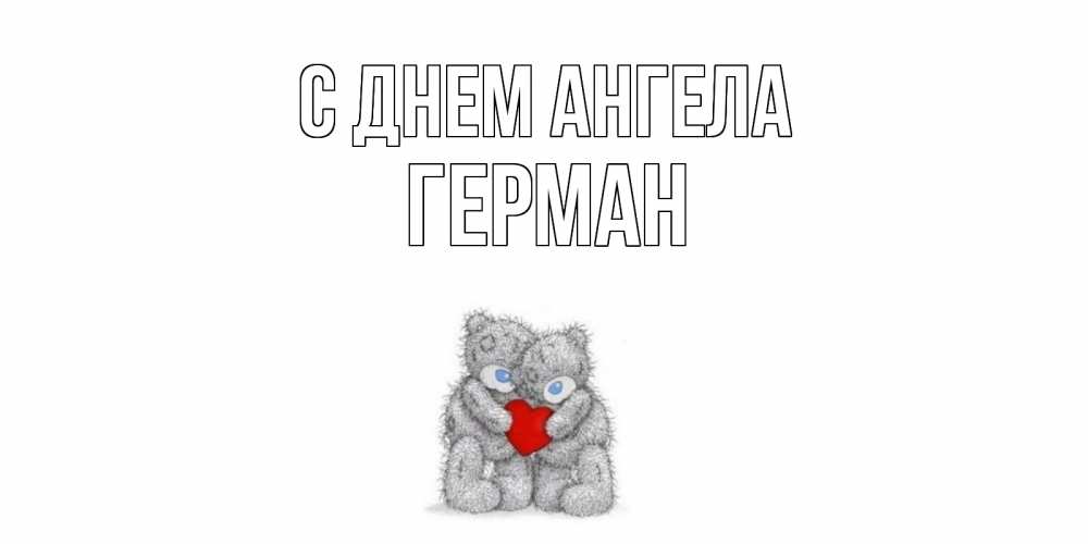 Открытка С днем Ангела Герман. Мишки обнимаются с сердечко. мишки, сердце
