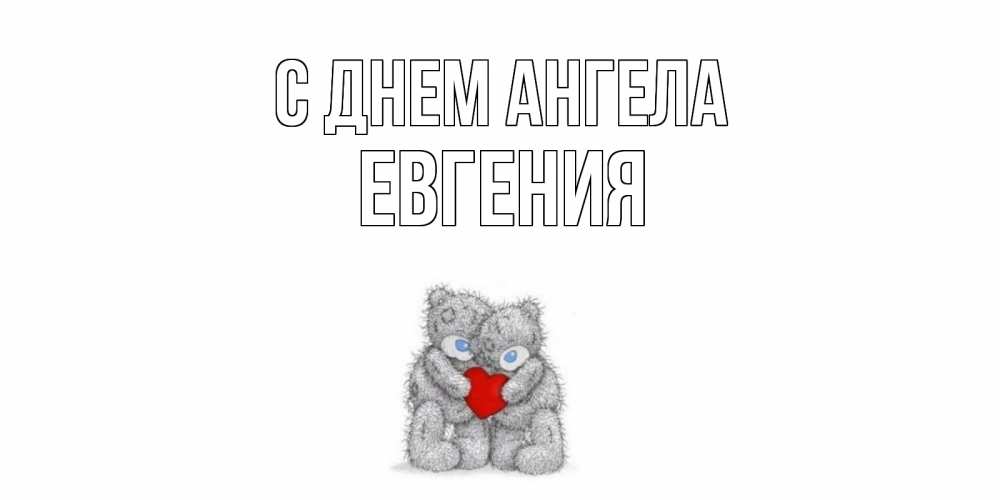 Открытка С днем Ангела Евгения. Мишки обнимаются с сердечко. мишки, сердце