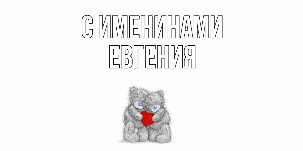 Открытка С именинами Евгения. Мишки обнимаются с сердечко. мишки, сердце