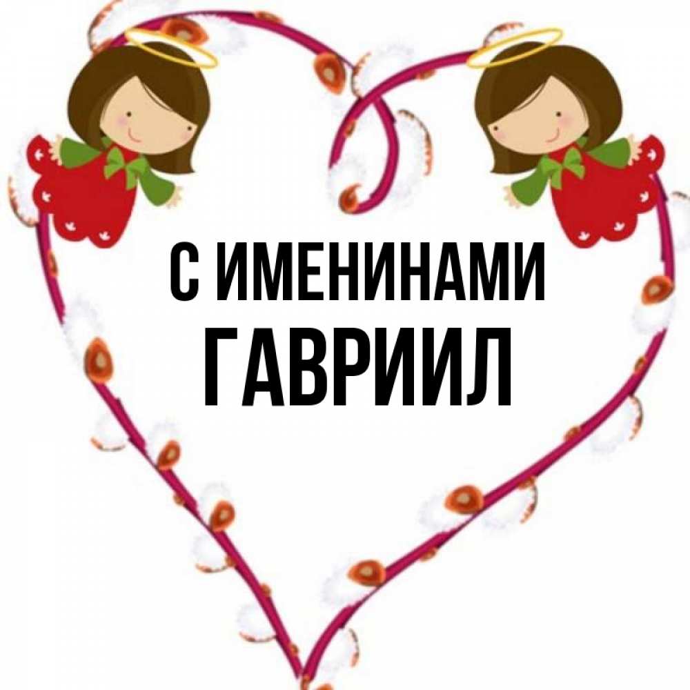Открытка С именинами Гавриил. Ангелы в сердце. рамочка в виде сердца