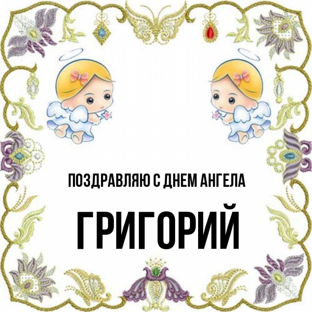 Открытка Поздравляю с днем Ангела Григорий. с днем ангела драгоценная рамочка. маленькие ангелы с крылышками