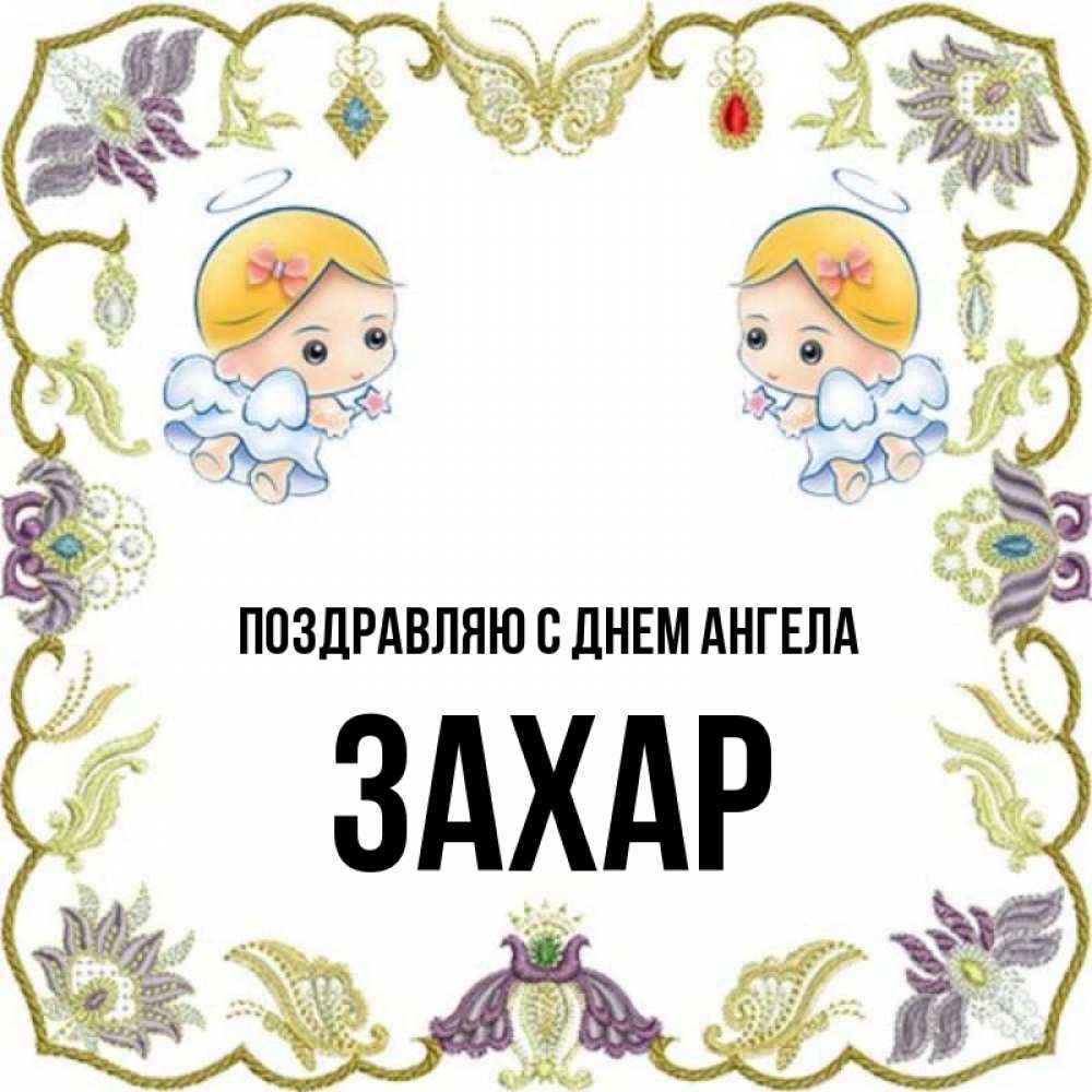 Открытка Поздравляю с днем Ангела Захар. с днем ангела драгоценная рамочка. маленькие ангелы с крылышками