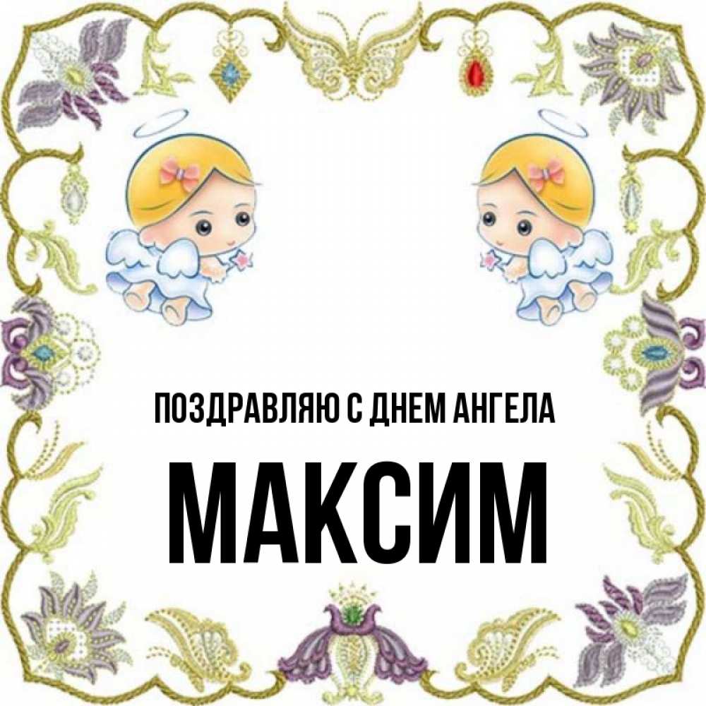 Открытка Поздравляю с днем Ангела Максим. с днем ангела драгоценная рамочка. маленькие ангелы с крылышками