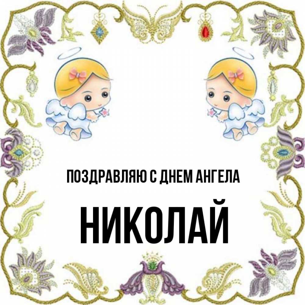 Открытка Поздравляю с днем Ангела Николай. с днем ангела драгоценная рамочка. маленькие ангелы с крылышками