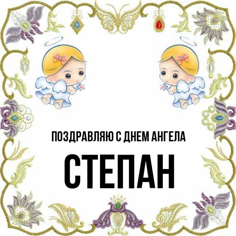 Открытка Поздравляю с днем Ангела Степан. с днем ангела драгоценная рамочка. маленькие ангелы с крылышками