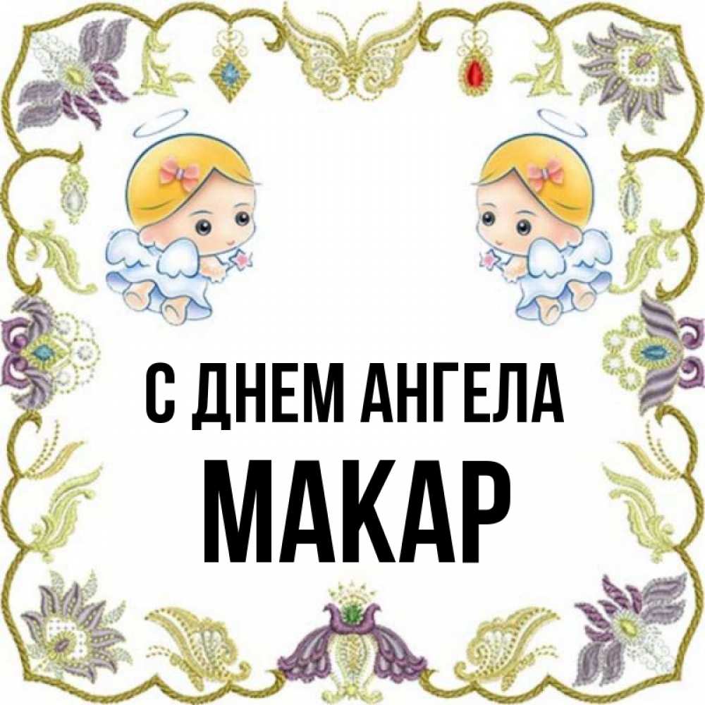 Открытка С днем Ангела Макар. с днем ангела драгоценная рамочка. маленькие ангелы с крылышками