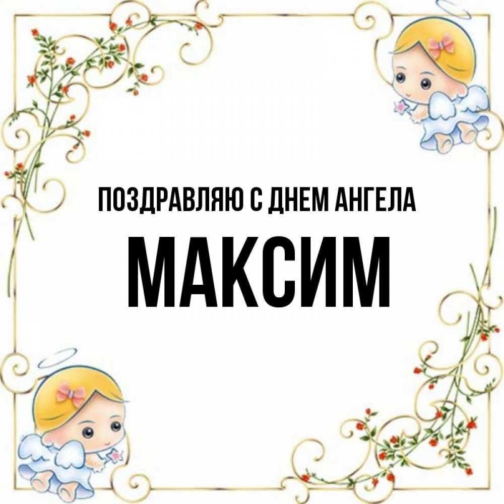 Открытка Поздравляю с днем Ангела Максим. ангелы с волшебной палочкой. девочки ангелы