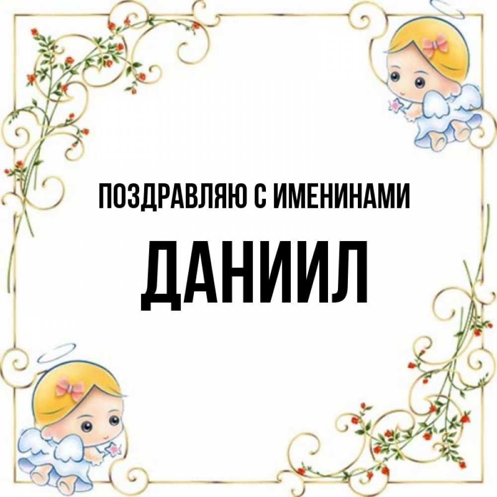 Открытка Поздравляю с именинами Даниил. ангелы с волшебной палочкой. девочки ангелы