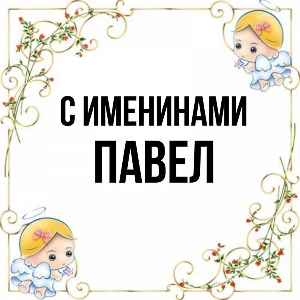 Открытка С именинами Павел. ангелы с волшебной палочкой. девочки ангелы