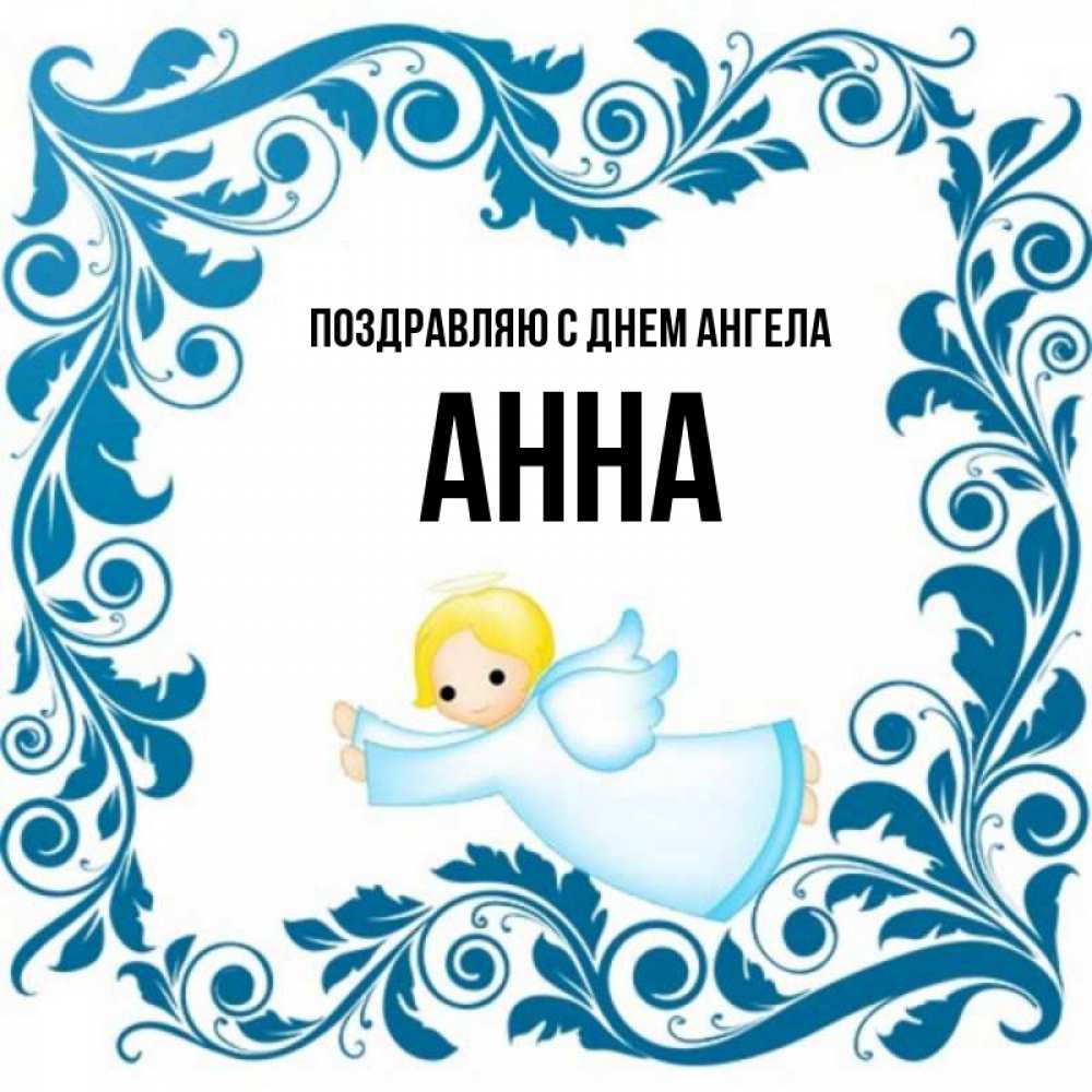 Открытка Поздравляю с днем Ангела Анна. летящий ангел в рамочке. девочка ангел и синяя рамка