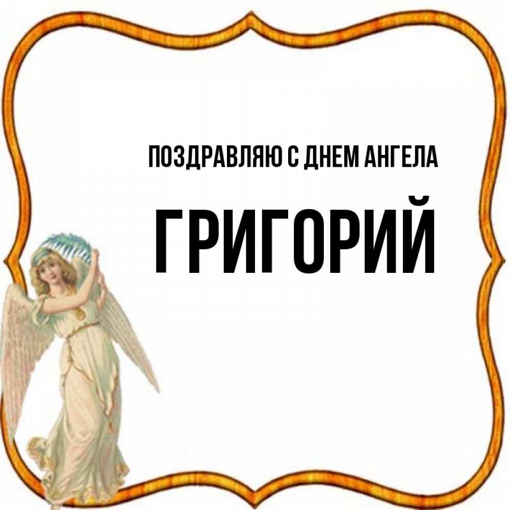 Открытка Поздравляю с днем Ангела Григорий. женщина ангел с крыльями. рамочка простая
