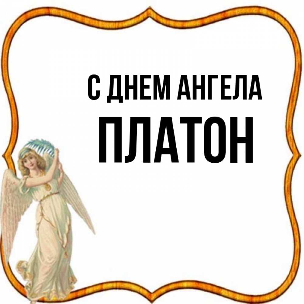 Открытка С днем Ангела Платон. женщина ангел с крыльями. рамочка простая