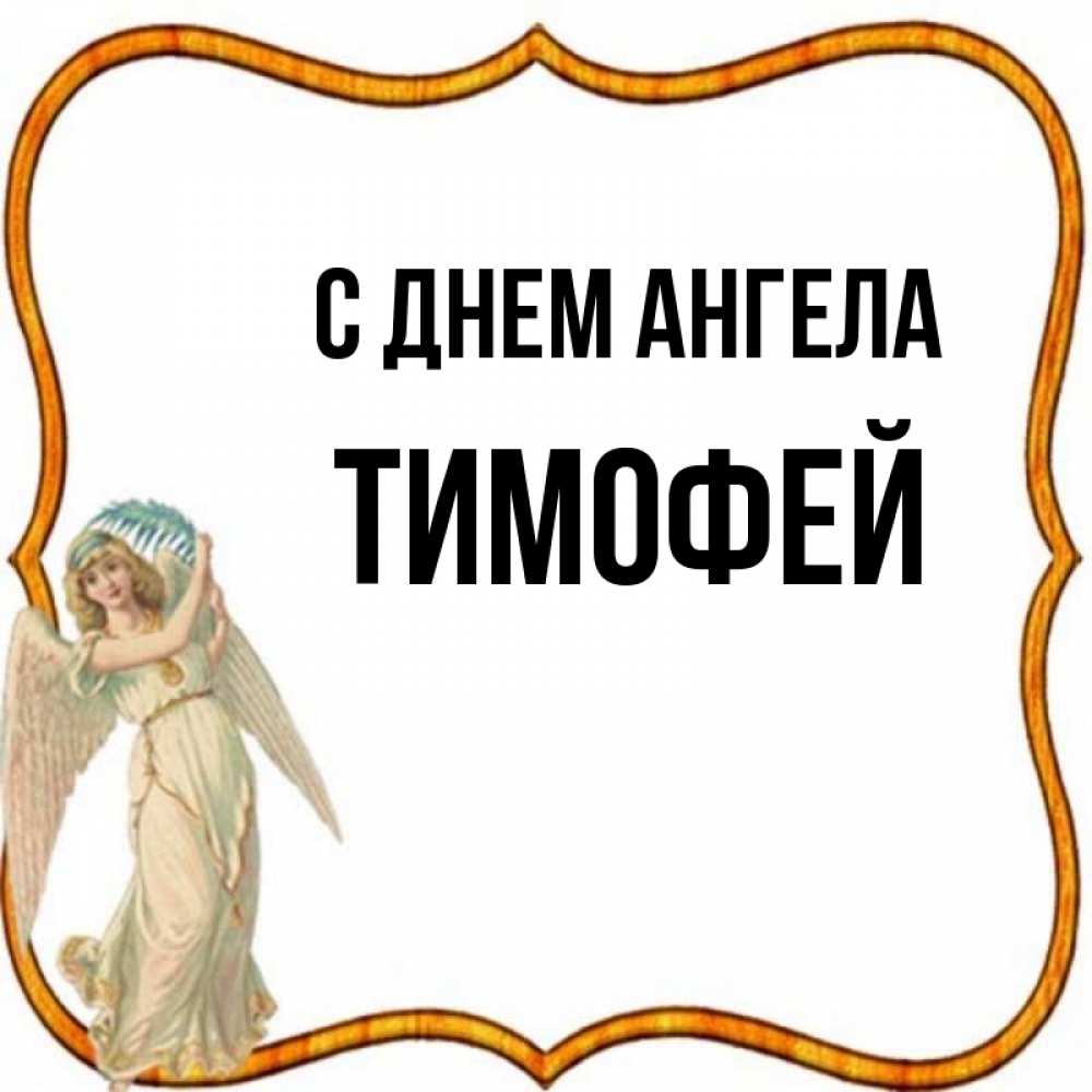 Открытка С днем Ангела Тимофей. женщина ангел с крыльями. рамочка простая