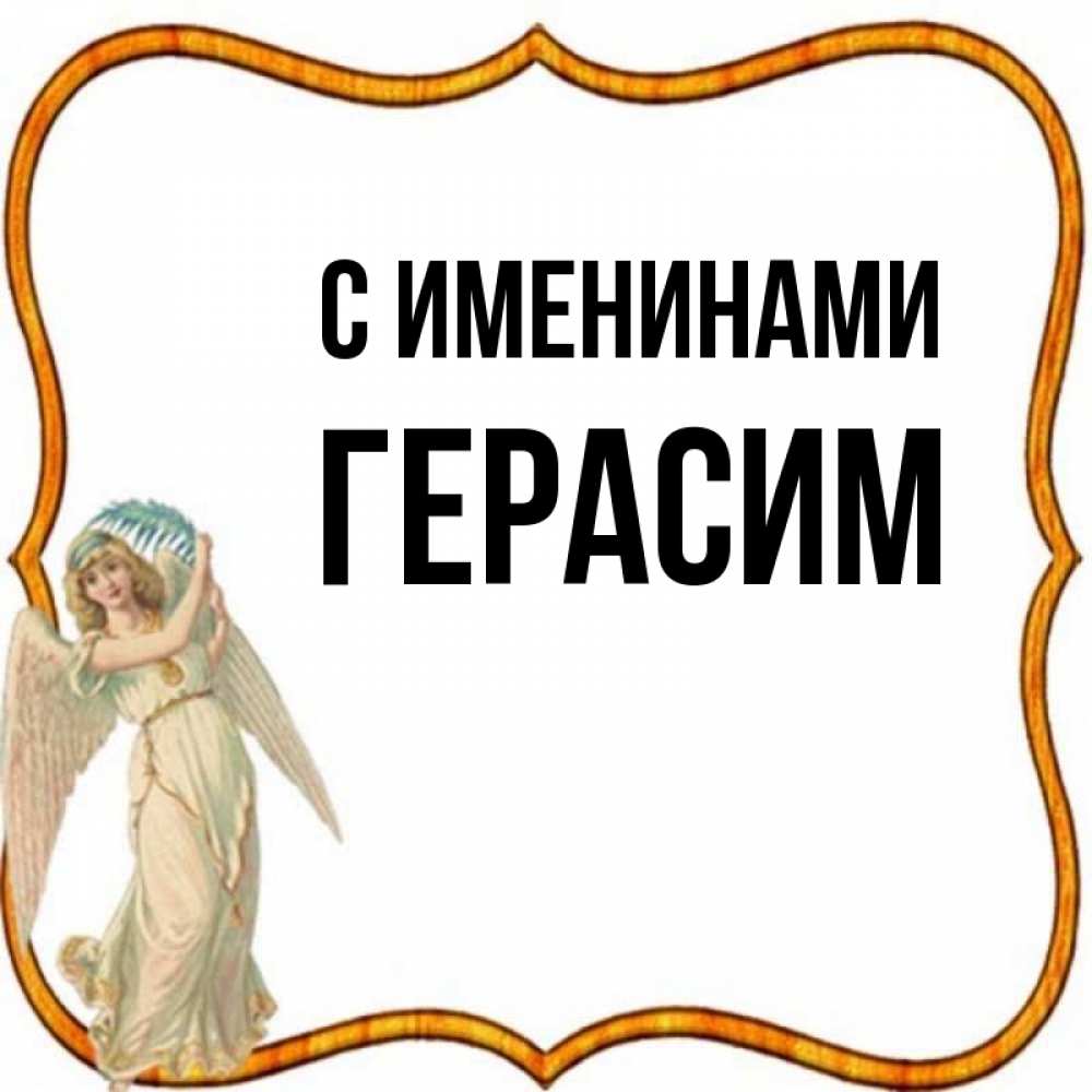 Открытка С именинами Герасим. женщина ангел с крыльями. рамочка простая