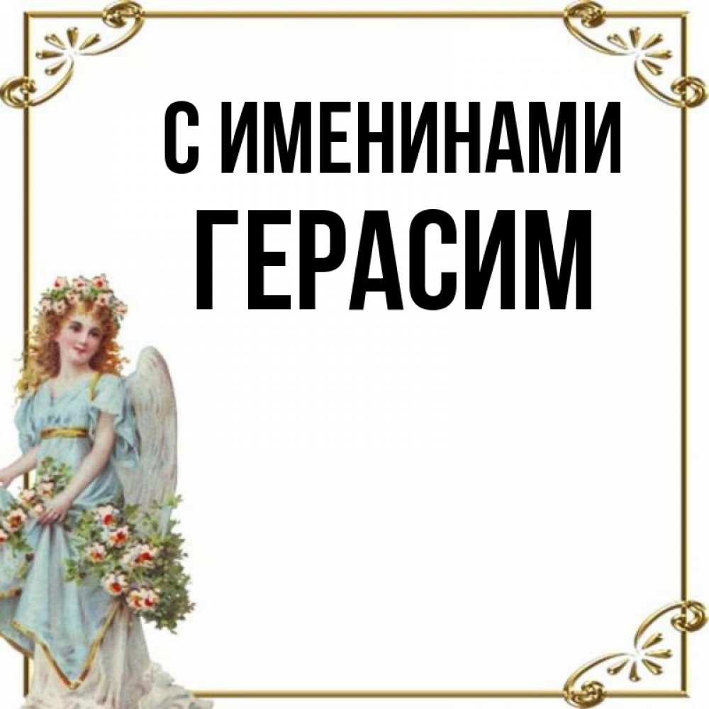 Открытка С именинами Герасим. ангел в голубом платье и венке из цветов. с именинами от девушки ангела