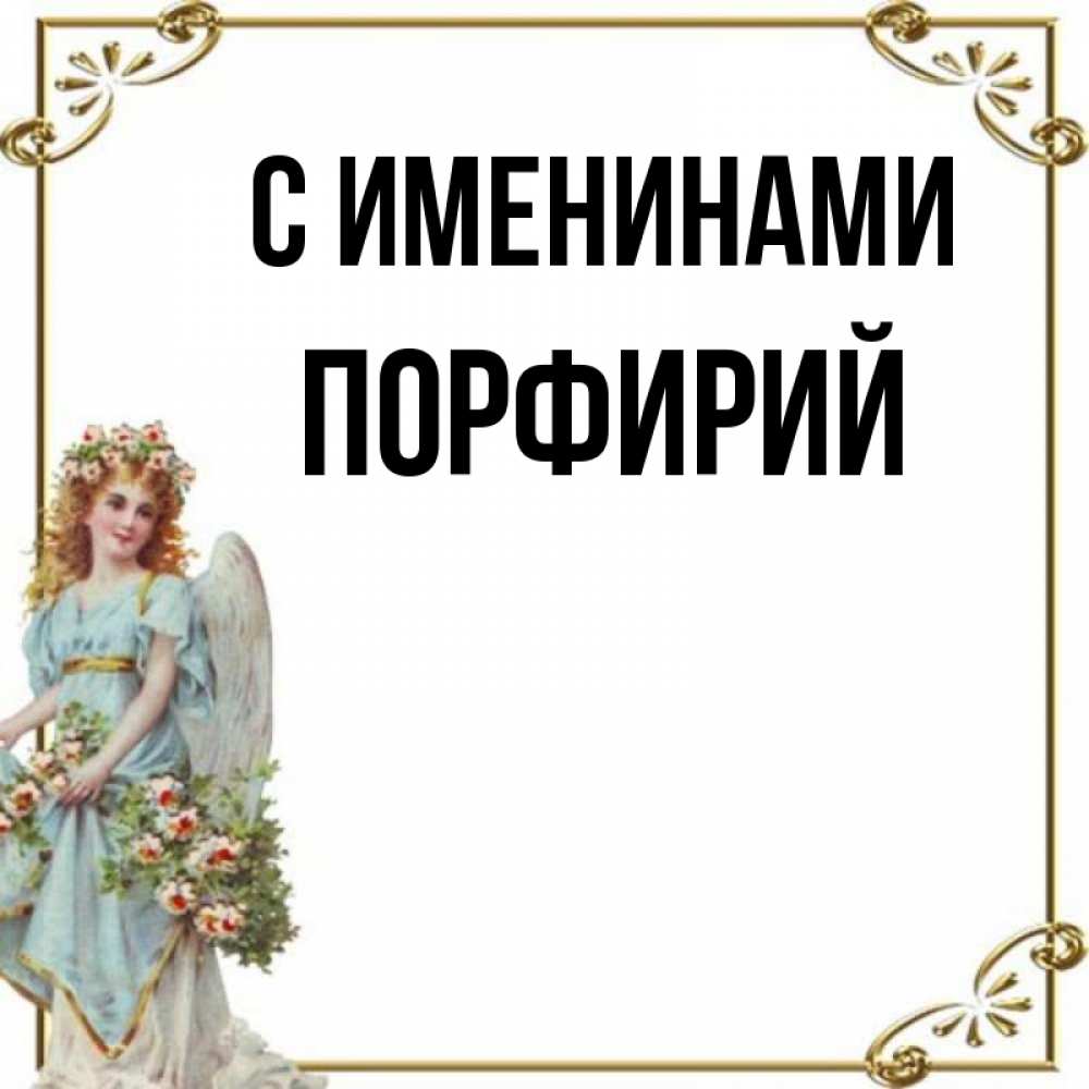 Открытка С именинами Порфирий. ангел в голубом платье и венке из цветов. с именинами от девушки ангела