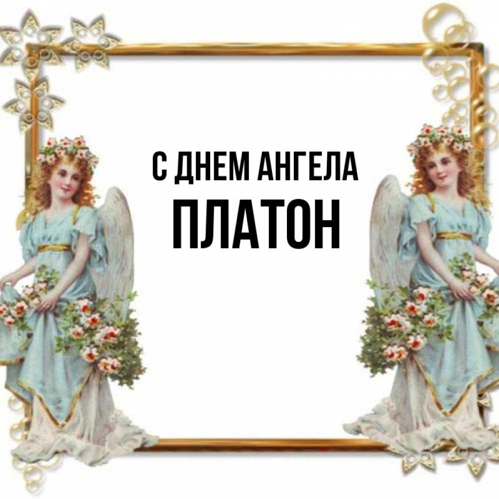 Открытка С днем Ангела Платон. Красивая открытка с ангелами. рамочка из золота и ангелы