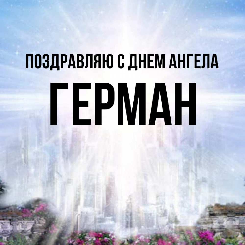 Открытка Поздравляю с днем Ангела Герман. Ангельский город. небесный свет