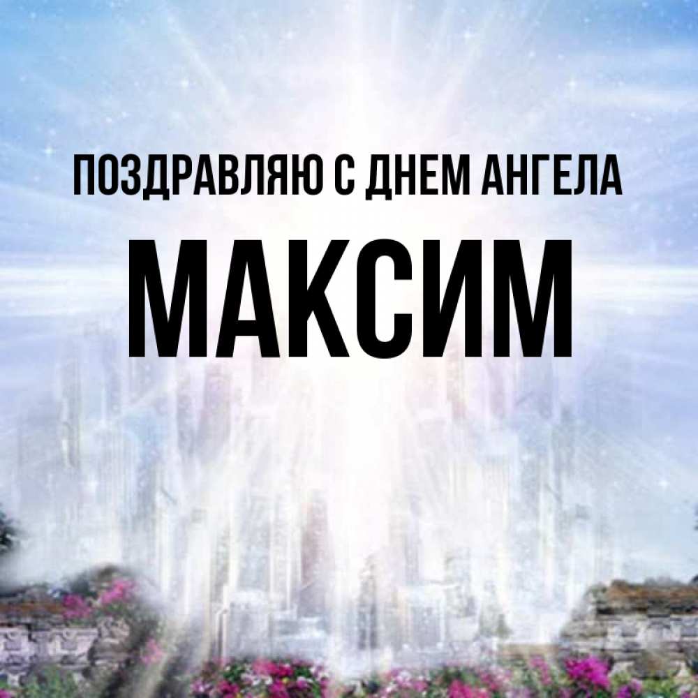 Открытка Поздравляю с днем Ангела Максим. Ангельский город. небесный свет