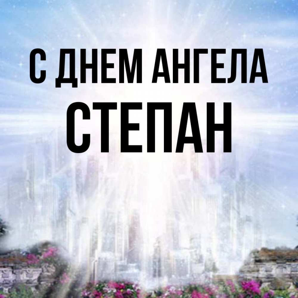 Открытка С днем Ангела Степан. Ангельский город. небесный свет