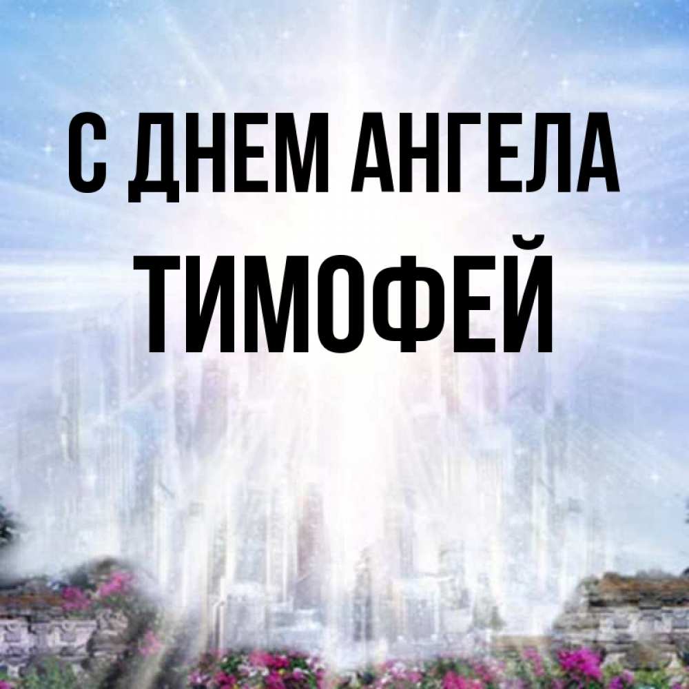 Открытка С днем Ангела Тимофей. Ангельский город. небесный свет